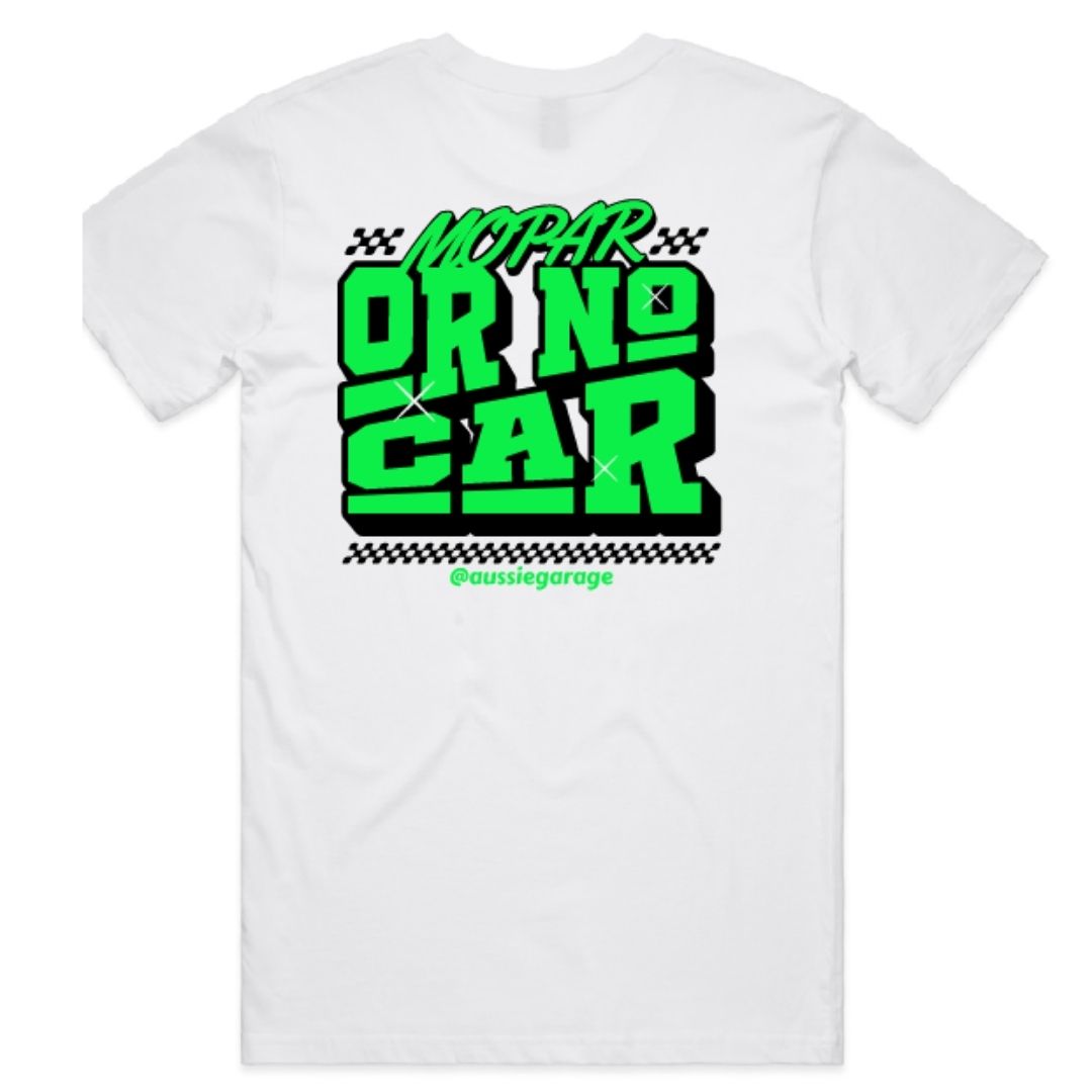Make your statement clear! Grab your official “Mopar or No Car” T-Shirt and let everyone know what team you’re on!